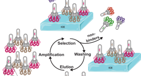 Developing molecules that emulate the properties of naturally occurring ice-binding proteins (IBPs) is a daunting challenge. Here, the authors demonstrate the use of phage display for the identification of short peptide mimics of IBPs, which resulted in the identification of a cyclic ice-binding peptide containing just 14 amino acids.