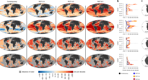 The authors develop a climate risk index for marine species under two emission scenarios and find that exploited species in low-income countries have the greatest risk under the high emissions scenario. Mitigating emissions reduces risks, enhances ecosystem stability and benefits low-income countries that depend on fisheries.