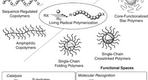 This article reviews the design of polymeric functional spaces with microgel-core star polymers and single-chain folding/crosslinked polymers via living radical polymerization for unique functions. Core-functionalized star polymers were prepared by the intermolecular linking of arm polymers with functional linkers/monomers to provide solubilized microgel spaces for active and recyclable catalysis and selective and stimuli-responsive molecular recognition. Single-chain folding and crosslinked polymers were in turn obtained from the self-folding and/or intramolecular linking of amphiphilic random copolymers carrying hydrophilic poly(ethylene glycol) chains and hydrophobic alkyl pendants in water.
