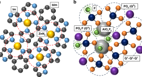 The recently introduced glass and liquid states of metal–organic frameworks (MOFs) provide opportunities to design and explore new properties for this class of material. Here, the authors show that a MOF liquid can be blended with another MOF component to produce domain-structured MOF glasses with single, tailorable glass transitions.
