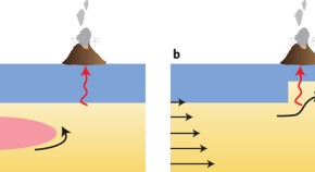 Why broad fields of volcanism are found in the interior of tectonic plates is hard to explain. Spatial correlations between sheared mantle flow and volcanism suggest that differential motion between surface plates and the mantle generates upwelling and melt.