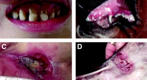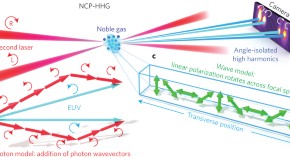 Femtosecond laser pulses can generate self-organized nonlinear gratings in nanophotonic waveguides, providing both quasi-phase-matching and group-velocity matching for second-harmonic generation, and enabling simultaneous χ2 and χ3 nonlinear processes for laser-frequency-comb stabilization.