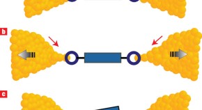 Experiments to explore electron transport in single molecules generally involve the use of chemical linker groups at both ends of the molecule to firmly anchor it to the source and drain contacts. Here it is shown that oligo-phenylene ethynylene molecules with a single anchor group can form molecular junctions as well. The process is attributed to aromatic stacking between neighbouring molecules in nearby electrodes.