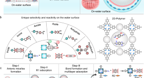 On-water surface synthesis, characterized by enhanced reactivity, distinct selectivity, and confined reaction geometry, offers potential for synthesis but is currently limited by the requirement for a stable air-water interface. Here the authors present an approach that mimics on-water surface chemistry using micelles.