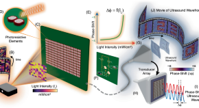 Phased Array Transducers (PATs) are used to shape ultrasound. They require complex electronics and are hard to scale, which limits their ability to form sophisticated patterns. Here, we introduce an analog platform that uses light to shift the electrical phase of the transducers and demonstrate versatile ultrasonic functions in a scalable device.