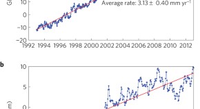 Altimeter data suggest that sea level rose by about 2.4 mm per year from 2005 to 2011, but estimates of the relative contributions of ocean warming and increased ocean mass are equivocal. An analysis of ocean temperature and satellite gravity data suggests that the delivery of meltwater from ice sheets and mountain glaciers contributed 75% of the observed sea-level rise.