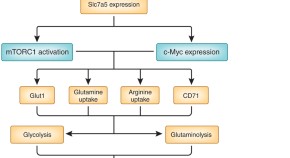 T cell activation requires an influx of amino acids. Slc7a5, an amino-acid transporter induced by the T cell antigen receptor, facilitates the influx of large neutral amino acids and in doing so promotes metabolic reprogramming necessary for T cell differentiation.