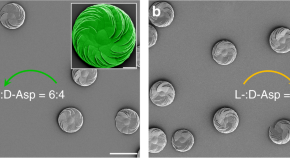 Chiral structures are formed in numerous processes including biomineralization of calcium carbonate. Here, the authors demonstrate that the chiral, hierarchically-organized architecture of the calcium carbonate mineral, vaterite, can be controlled simply by the addition of chiral acidic amino acids.