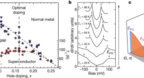 • The mechanism of high-temperature superconductivity remains a subject of debate. Krasnov et al.describe a technique for measuring the spectra of bosons generated during the formation of Cooper pairs in a cuprate, the results of which suggest that the process is governed by electron–electron interactions.