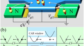 • Spin correlation experiments are demonstrated in an electron entangler device based on the ‘splitting’ of Cooper pairs from a superconductor, which can potentially be used to investigate many fundamental phases and processes related to the electron spin.