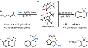 Bifunctional methyltransferase–cyclases both transfer a methyl group to alkenes and induce cyclization—a process called methylcyclization. Now a non-enzymatic silver(I)-mediated electrophilic methylcyclization has been reported. The reaction uses commercial reagents, is applicable to a wide range of substrates and affords structures that are difficult to access by conventional synthetic methods.