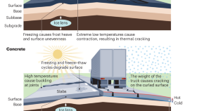 Roadways are damaged by temperature extremes, increased precipitation and sea level rise. This Review discusses the mechanisms and impacts of climate stressors on roadways, the resulting operational and maintenance challenges, and strategies to increase resilience.