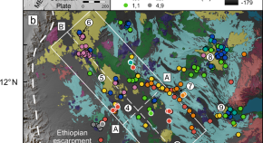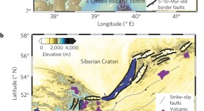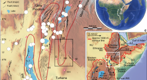 As continents are stretched apart, deep rift valleys form and volcanoes can erupt both inside and outside of the valley. Numerical modelling suggests that gravitational unloading, caused by thinning of the stretched crust, can deflect rising magma towards the edges of the rift valley, causing off-rift eruptions.