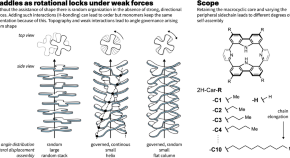 Self-assembly in the formation of two dimensional materials typically relies upon strong, directional interactions instead of covalent bonds but control over less directional forces remains challenging. Here, the authors show the process of shape-assisted self-assembly to be consistent across a range of derivatives that highlights the restriction of rotational motion.