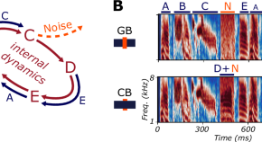 • Neural mechanisms underlying auditory restoration are not fully understood. Here authors show that, neural populations of the zebra finch in the equivalent of auditory cortex respond to song with deleted syllables as if the missing syllables were actually present, indicating that information about the temporal structure of song is stored in this area. Their findings suggest that the internal model has a generalized representation of species-typical syntax.