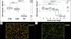 • α-Synuclein accumulation in putaminal synapses is hypothesised to drive Parkinson’s disease progression. This study demonstrates synaptic pSer129 α-synuclein enrichment in early-stage Parkinson’s disease, and its link with dopaminergic denervation and cortical Lewy body pathology.