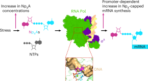 • Duan and Kaushik et al. reveal the structural basis of how Escherichia coli and Thermus thermophilus RNA polymerases initiate transcription from Np4A alarmones producing Np4-capped transcripts. The caps form various interactions with a polymerase during initial steps, influencing capping efficiency.