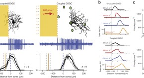 In this study, the authors show that velocity-dependent lag normalization in the retina is accomplished via a subset of adjacent directionally selective ganglion cells that are electrically coupled, allowing each activated cell to prime its neighbor.