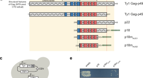 In Saccharomyces cerevisiae, unchecked proliferation of Ty1 retrotransposons is controlled by the process of copy number control (CNC), which requires the p22/p18 protein, translated from an internal transcript within the Ty1 GAG gene. Here, the authors present the 2.8 Å crystal structure of a minimal p18 from Ty1-Gag that is able to restrict Ty1 transposition and identify two dimer interfaces in p18, whose roles were probed by mutagenesis both in vitro and in vivo. As p22/p18 contains only one of two conserved domains required for retroelement Gag assembly, they propose that p22/p18-Gag interactions block the Ty1 virus-like particle assembly pathway, resulting in defective particles incapable of supporting retrotransposition.