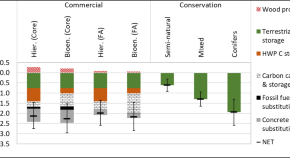 • Afforestation is an important greenhouse gas (GHG) mitigation strategy but the efficacy of commercial (harvested) forestry is disputed. Here the authors apply dynamic life cycle assessment to show that new commercial conifer forests can achieve up to 269% more GHG mitigation than semi-natural forests, over 100 years.