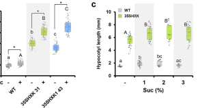 Kelly et al. show that Arabidopsis hexokinase1 (HXK1) expressed in guard-cells is sufficient to drive hypocotyl elongation through increasing the activity of PIF4 and auxin level, and competing with the effects of HY5. This study provides insights into how light and sucrose antagonistically coordinate the effort to achieve the height necessary for efficient photosynthetic, autotrophic sugar production.