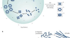 The size and shape of amyloid-β protein assemblies have been studied using electrospray-ionization ion-mobility mass spectrometry, and the protein tetramers and dodecamers have been identified as an important oligomerization state in the development of neurodegenerative disease.