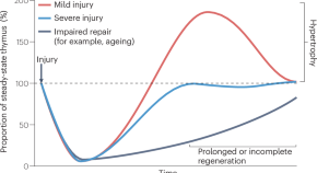The thymus is sensitive to acute insults including infection, as well as to injury from chemotherapy and myeloablative conditioning before hematopoietic cell transplantation. Here, Granadier et al. describe a role for IL-18 in limiting thymic regeneration by stimulating NK cells, which then target thymic epithelial cells.