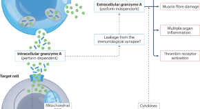 Granzyme serine proteases are known for their perforin-dependent cytotoxic activities, but evidence also indicates that they have a range of non-cytotoxic, pro-inflammatory intracellular and extracellular functions. In this Review, the authors discuss granzyme biology with an emphasis on its involvement in rheumatic disease pathology.