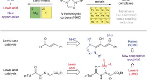 • In nature, enzymes can orchestrate the combination of several different catalytic species, but mimicking this with synthetic catalysts is often problematic due to undesirable interactions between the catalysts. Here, an N-heterocyclic carbene and a Lewis acid cooperate to catalyse the efficient formation of γ-lactams.