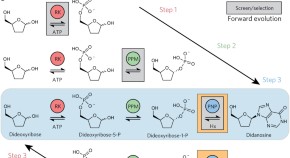 Bioretrosynthesis is meant to simplify construction of metabolic pathways by screening only for the final desired product. This approach, aided by protein design and crystallography, is now used to synthesize an antiretroviral nucleoside analog and surprisingly identifies a new enzyme function.