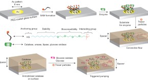 Self-powered micropumps that are turned on by the presence of their respective substrates are formed from surface-immobilized, ATP-independent enzymes. Coupling substrate-sensing with transport enables the design of devices that deliver cargo in response to specific stimuli. Demonstrated here is the release of insulin at a rate proportional to ambient glucose concentration.