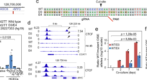 Gene-gating of a MYC oncogenic super-enhancer (OSE) increases its expression in colon cancer cells in a poorly understood process. Here the authors show that MYC gating requires a CTCF binding site (CTCFBS) within the OSE that directs the stepwise trafficking of the OSE to the nuclear pore to facilitate increased nuclear export of MYC mRNA, which results in a growth advantage.