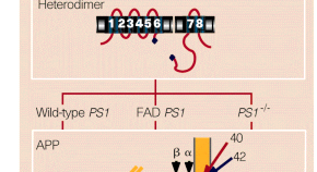 Mutations in the presenilin-1 gene (PS1) cause an aggressive form of familial Alzheimer's disease, and a new study goes some way to showing how. The authors created PS1 knockout mice, and found that they produced 80 per cent less amyloid-beta peptide (the protein that accumulates to form senile plaques) than normal mice. They propose that presenilin-1 normally stimulates production of amyloid-beta peptide by activating alpha-secretase-mediated cleavage of the amyloid precursor protein.