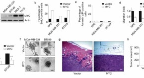 • Radisky and colleagues show that, in contrast to its pro-tumorigenic properties, the MYC oncogene is also able to inhibit metastasis by suppressing cell migration and invasiveness. Mechanistically, they show that MYC transcriptionally represses the integrin αv and β3 subunits, which are needed for efficient cell motility and invasion.