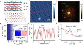 • The authors use angle-resolved photoemission spectroscopy (ARPES) and scanning tunneling microscopy (STM) to study the charge density wave (CDW) in the kagome material ScV6Sn6. The ARPES data shows minimal changes to the electronic structure in the CDW state, while STM quasiparticle interference measurements imply a strong reconstruction of the electronic structure in the CDW state.