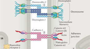 Mutations in genes that encode components of desmosomes are the predominant cause of arrhythmogenic cardiomyopathy, a genetic disorder characterized by fibrofatty replacement of myocardial tissue and the risk of life-threatening arrhythmias. In this Review, the authors discuss the molecular mechanisms underlying the pathogenesis of this condition.