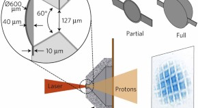 • When an intense laser pulse hits a flat metal foil, it ejects a spray of high-energy protons. Laser irradiation of a curved foil covering the tip of a hollow cone focuses the protons to intensities that could be useful for generating extreme states of matter.
