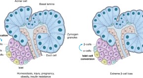 Deriving functional pancreatic cell types from human stem cells may have important clinical applications. Building on previous work, here the authors generate stem cell-derived alpha cells via a polyhormonal intermediate, which have a gene expression pattern similar to human islet alpha cells and behave as such when transplanted into mice.