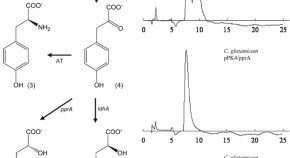 Microbial fermentation system is designed to convert glucose to 4-hydroxyphenyllactic acid (DHPA), an aromatic-containing derivatives of lactic acid. By a methylation, DHPA was transformed to a diol monomer to synthesize bio-based polyesters with benzene rings in their backbone. The polycondensation of DHPA diol was performed with a series of aliphatic diacid chlorides to produce semi-aromatic polyesters with glass-transition temperatures <45 °C. By polycondensation with aromatic diacylchlorides such as terephthaloyl chloride and isophthaloyl chloride, thermally stable DHPA-based polyesters with glass-transition temperatures as high as 130 °C were obtained.