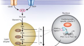 • Peroxisome proliferator-activated receptors (PPARs) are important transcriptional regulators of genes involved in energy metabolism. Hydrolysis of cardiac lipid droplets by adipose triglyceride lipase (ATGL) is now shown to be required for PPAR-mediated gene regulation and mitochondrial function, suggesting new therapeutic possibilities for neutral lipid storage disease caused by mutations in ATGL (also known as PNPLA2) (pages 1076–1085).
