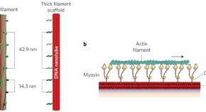 • Synthetic muscles built from DNA nanotube scaffolds can be used to study how myosin motors work together to make real muscles function.