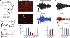Spinal cord injury leads to flaccid paralysis resulting from the loss of descending serotonergic modulation. Murray et al. demonstrate that spontaneous recovery of motoneuron excitability is associated with alternative mRNA editing and increased expression of constitutively active 5HT2C serotonin receptors. Activation of these receptors leads to large persistent calcium currents, sustained muscle contractions and restoration of locomotion. However, in the absence of descending modulation from the brain, this leads to spasticity. Inhibiting constitutive 5-HT receptor activity is effective in reducing spasticity in rats and humans following spinal cord injury.
