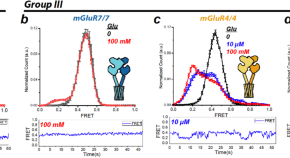 smFRET is used to probe the activation mechanism of two full-length mammalian glutamate receptors, revealing that the extracellular ligand-binding domains of these G-protein-coupled receptors interconvert between three confirmations (resting, activated and a short-lived intermediate state), and that the efficacy of an orthosteric agonist correlates with the degree of occupancy of the active state.