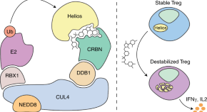 • Two degraders targeting zinc finger transcription factor IKZF2 (Helios) were developed by reprogramming CRL4CRBN E3 ligase, and the pharmacologic degradation of Helios results in Treg destabilization.