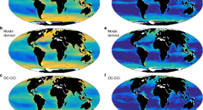Changes in chlorophyll-a are used as an indirect proxy for monitoring global changes in marine phytoplankton. Here the authors show that remote sensing reflectance (RRS), such as the ratio of upwelling versus downwelling light at the ocean’s surface, has a stronger and earlier climate-change-driven signal over the 21st century.