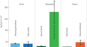 The organic matter stored in frozen Arctic soils could release significant quantities of carbon dioxide and methane on thawing. Now, laboratory experiments show that re-wetting of previously thawed permafrost could increase nitrous oxide production by 20-fold.