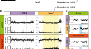 In this study, using a human neocentromere as a model, the authors show that centromeres have a special chromatin structure. Centromere repositioning triggers transcriptional activation, epigenetic remodelling and chromatin fibre decompaction.