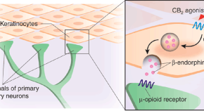THC acts as a pain reliever in part by engaging a receptor in peripheral tissues, CB2. But exactly where CB2 is and how it operates has been unclear. A new study shows that cannabinoids, acting through CB2 on skin cells, stimulate the local release of endogenous opioids.