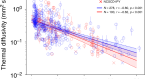 Soils in the northern permafrost region contain large quantities of organic carbon, formed over long time scales under cold climates. Here the authors test a number of soil properties and show that soil organic carbon is the dominant factor controlling thermal diffusivity among 200 sites in high latitude regions.