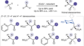 The construction of vicinal stereocentres—particularly sterically bulky quaternary motifs—from racemic alkyl halides remains a formidable challenge. Here, a cobalt-catalysed enantioconvergent reductive addition of racemic alkyl halides to imines has been developed, enabling efficient synthesis of diverse contiguous stereocentres, including tertiary–tertiary, tertiary–quaternary and quaternary–quaternary stereocentres, with high diastereo- and enantioselectivities.
